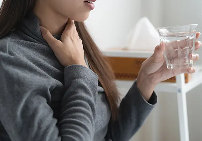 - Bei den ersten Anzeichen von Halsschmerzen und Schluckbeschwerden